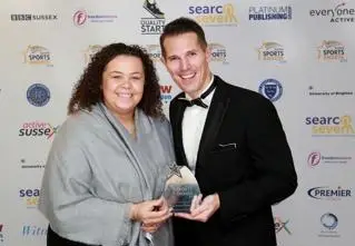 McKenzie receives her award from Barry Squires Head of Sport at the university